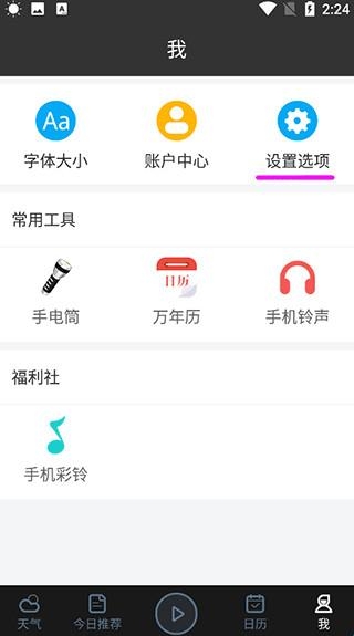 1、打开软件,在“我的”界面找到并点击“设置选项”;