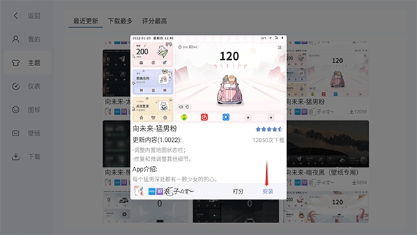 3、接着点击安装将主题下载
