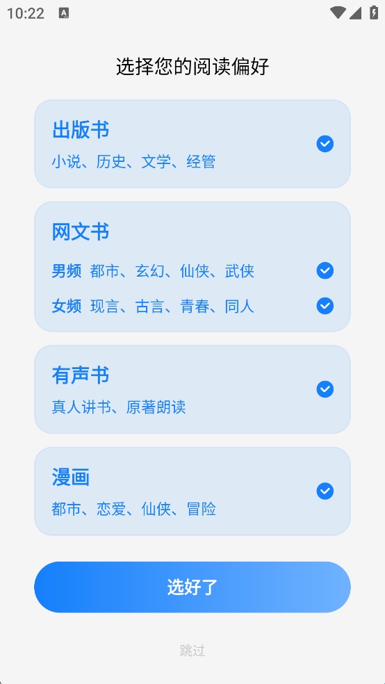 2、选择自己的阅读偏好