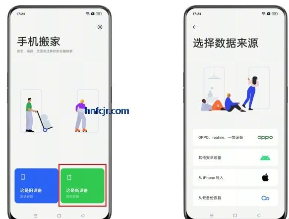 1、打开新手机上的「手机搬家」APP,点击“这是新设备”,选择旧手机的品牌或类型,系统将自动生成专属连接二维码。