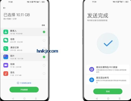 3、两台设备连接成功后,可选择“全部迁移”将旧手机所有数据一键转移,或通过“自定义搬家”按需选择联系人、照片、应用、设置等内容进行迁移,确认后点击“开始搬家”即可启动传输。