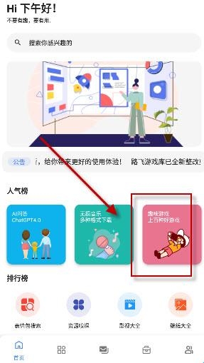 1、打开软件,点击主界面的【精品小游戏】进入;