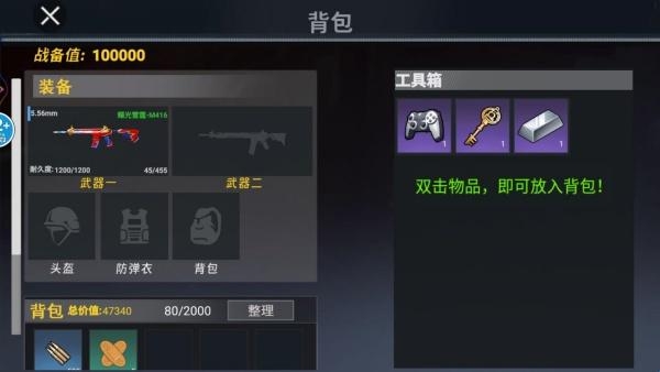 2、搜刮战利品的时候,可以把工具箱里面的物品快速点两下,就能放入到背包当中。