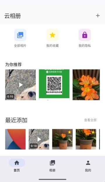 3、进入软件首页,可查看最近添加相册等