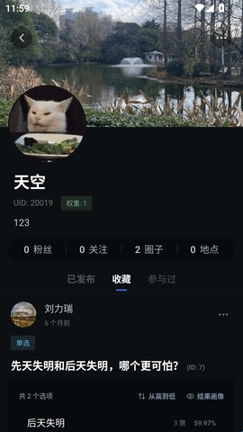 3、点击用户头像还可以查看个人信息以及参与的话题讨论