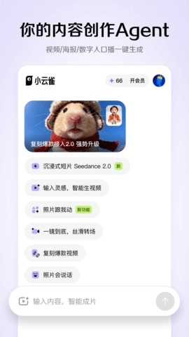 小云雀是一款擅长AI推理画图、AI联网搜索和AI智能问答的软件。软件为用户提供高效智能的工具,提升用户的工作效率和生活质量,通过提问AI来减少检索时间,可以帮助用户快速解决问题,智能写作、图片分析、素材整理等高效的功能也都可以免费使用哦。