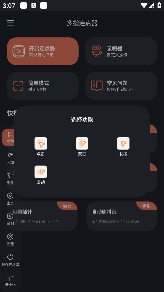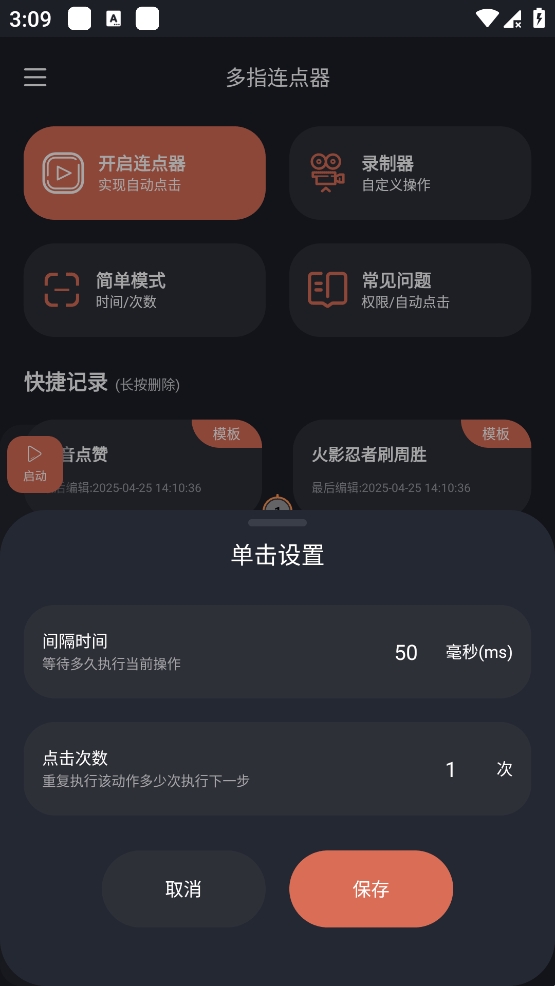 多指连点器是一款免ROOT实现自动点击的强大APP。软件提供多种连点方式,用户可以根据自己的需求来设置需要的点击模式,支持多点操作,减少用户操作疲劳,解放双手,定时定点的设置点击频率,满足用户的多种点击需求,一键轻松录制哦。