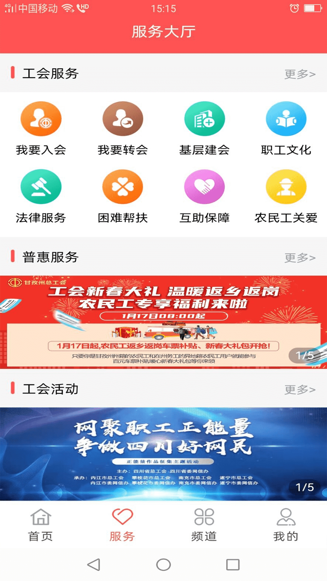 川工之家是专门为工会职工打造的服务软件,提供的有入会转会服务、时政要问、工作动态、职工文化等多种服务,使工会朋友能够更快的办理服务,了解最新的行业动态。各种折扣体检服务会同步更新,手机上就能够直接了解,操作办理所需要的服务。有需要的用户快来安装看看吧~
