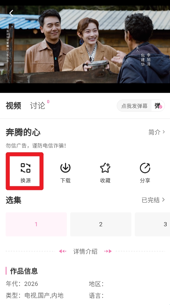 2、进入播放详情页点击"换源"按钮