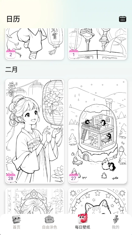 爱涂壁纸是一款可以绘画涂鸦的手机壁纸软件。软件提供了海量的素材资源,自然风光、抽象几何、动漫角色等主题应有尽有,等你来选择填涂,全功能绘图工具箱内有着超多的笔刷和色彩,用户可以轻松的创作出适配不同屏幕比例的高清壁纸。
