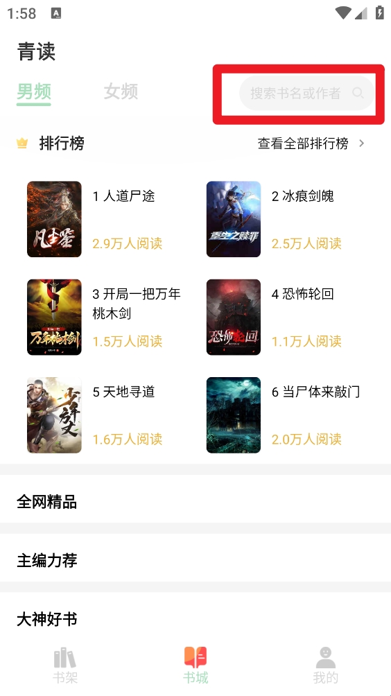 1、打开软件,在书城中点击搜索框进入