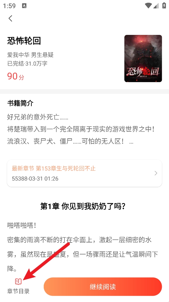 3、进入书籍详情页后点击"章节目录"