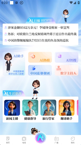 2、除了常规的文字新闻以外软件内还内置电视、直播和短视频功能