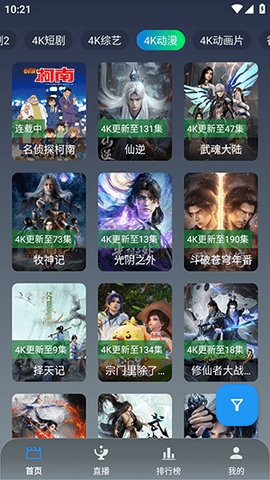 在首页点击下面的“直播”功能进入查看电视直播界面