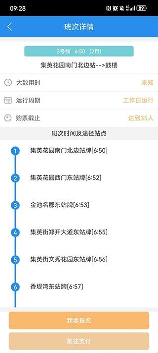 3、选择完线路之后点击我要报名,之后进入报名界面填写好自己的姓名,再点击报名即可完成公交的定制啦。