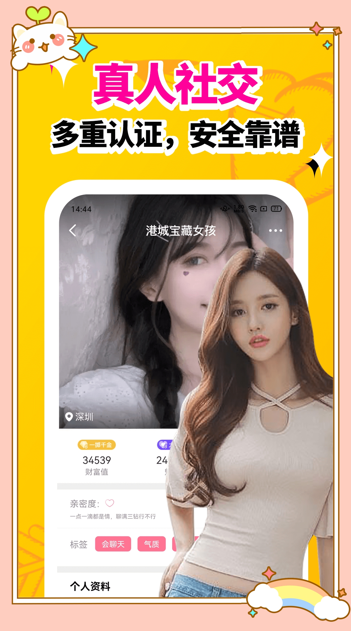 1、专门为用户提供高颜值的真人社交服务,聚集了大量颜值比较高的单身男女,所有用户的信息都是经过了身份审核,用户可以放心的交友。