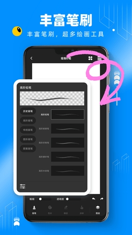提供多种仿生画笔,能够模拟真实手绘效果,并支持用户自定义笔刷。