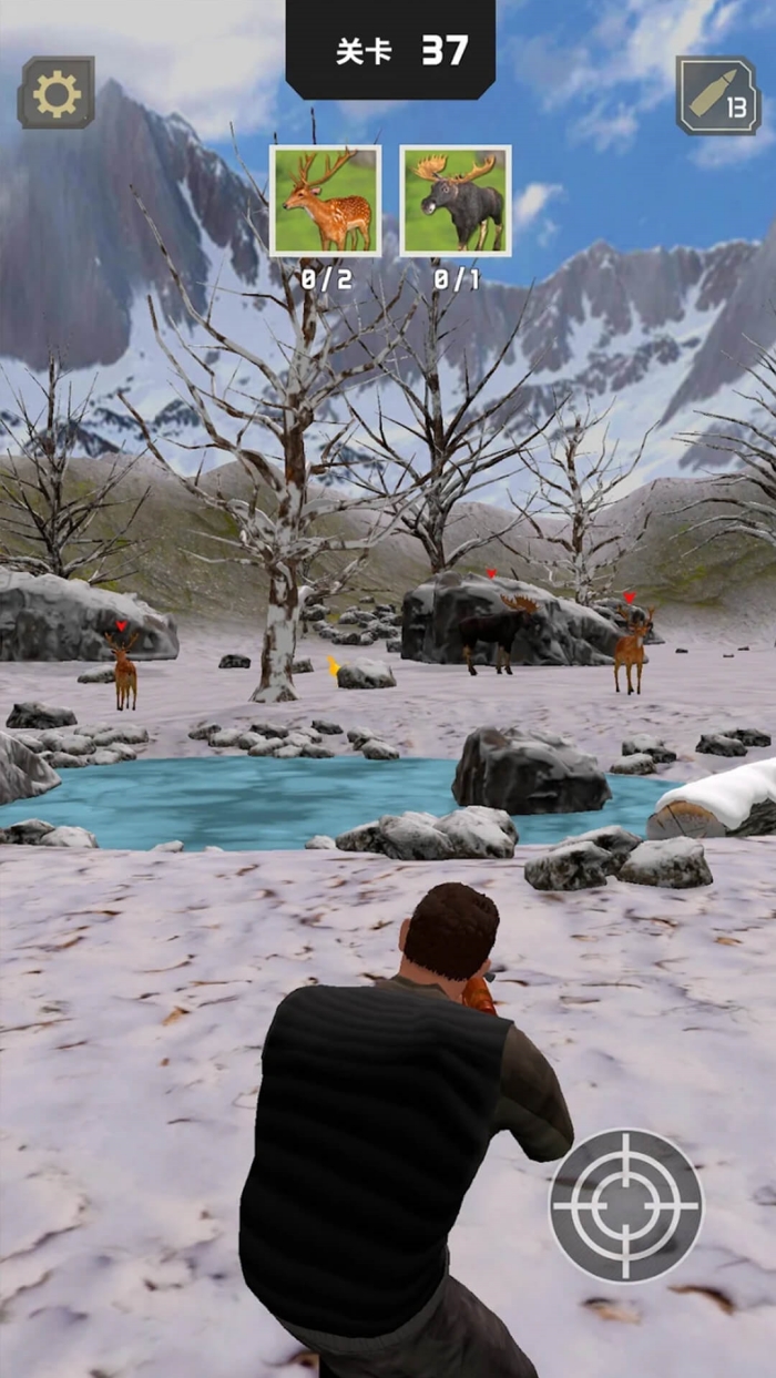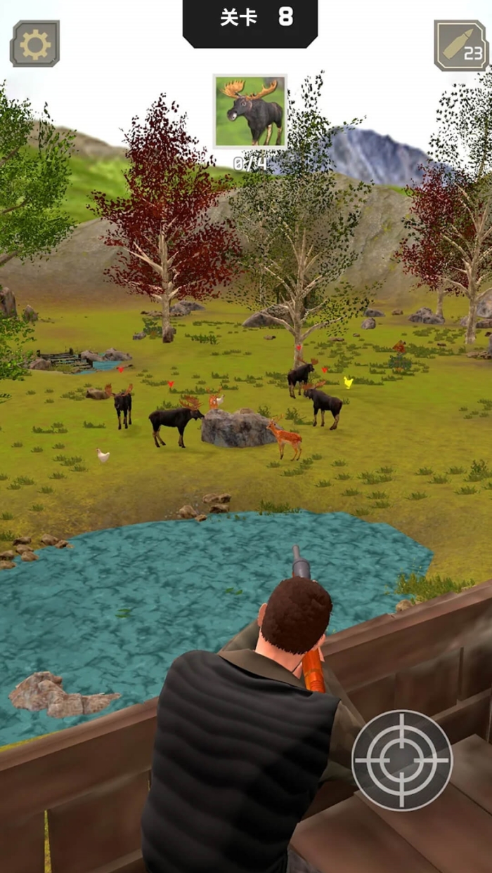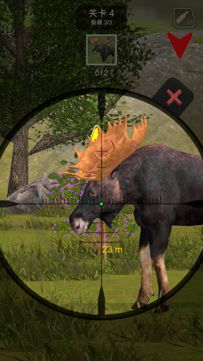 2、当猎物在准星上时,松动屏幕进行射击,击中猎物的不同位置会造成伤害,伤害达到击败要求则为狩猎成功;