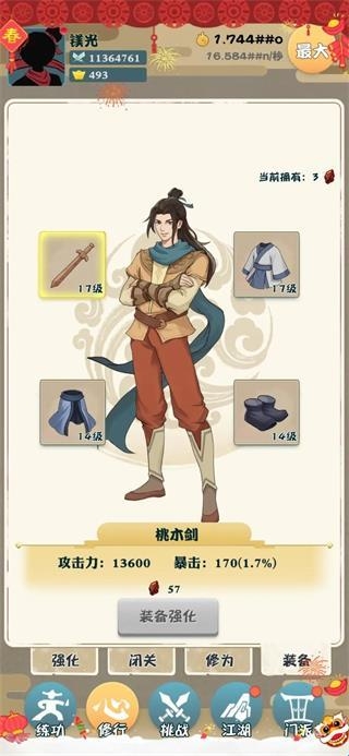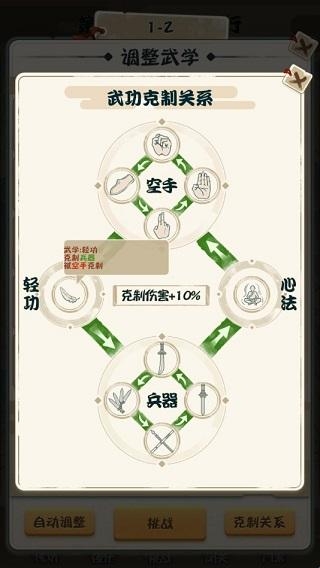 3、三为“挑战”玩法,即闯关模式,若想成长为一名武功盖世的江湖侠客,不断的通过历练,也就是挑战闯关,才能开启更多武学解锁,提升战力,令自己在比武切磋中立于不败之地。