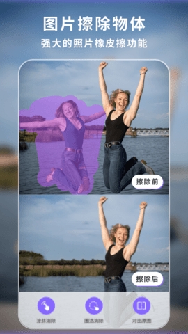 3、图片去水印:自由擦除不必要的印记,自定义调节擦除笔大小;