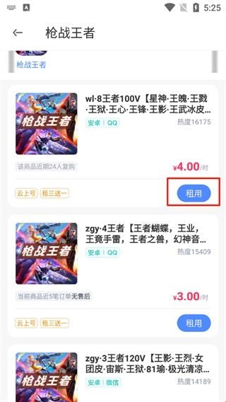 2、找到之后点击租用