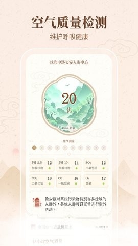 3、实时空气质量监测:提供实时更新空气质量,包含PM2.5/PM10等,更有每日预报折线图变化,清晰对比空气质量变化