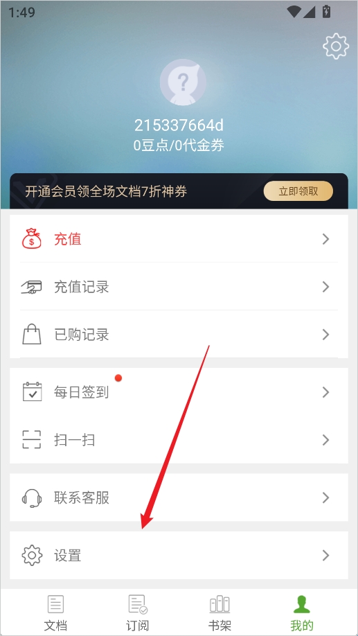 1、打开豆丁书房App,首先点击右下角的【我的】,进入个人中心界面。
