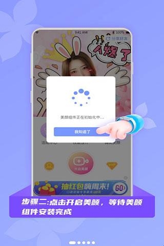 2、进入开启美颜界面,等待美颜组件安装完成,就可以开始了。