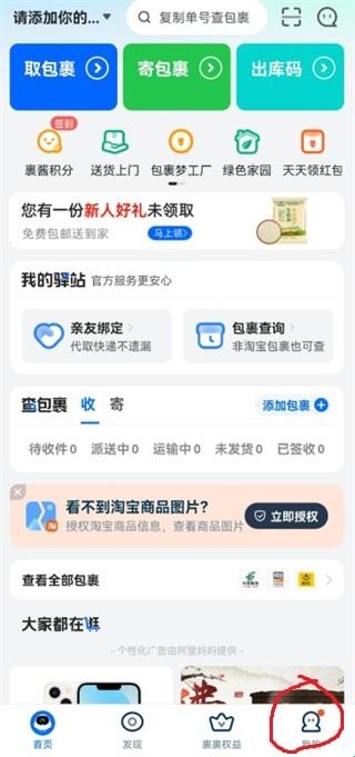 2、打开菜鸟后,点击我的;