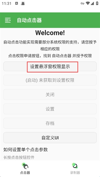 3、可以随时释放自己的双手,快速的开启或者关闭自动点击。