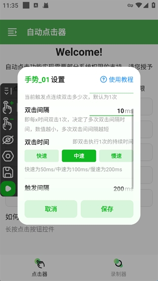 1、连点和长按以及滑动都能轻松设置,快速录制点击的操作。