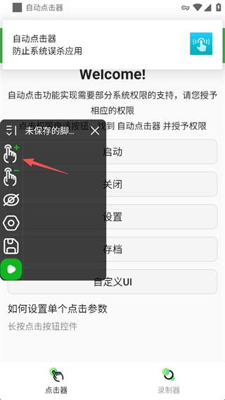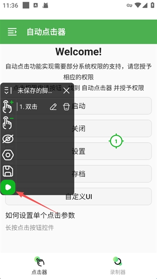1、线上可以让用户轻松上手,在屏幕上添加点击的位置,设置点击速度。