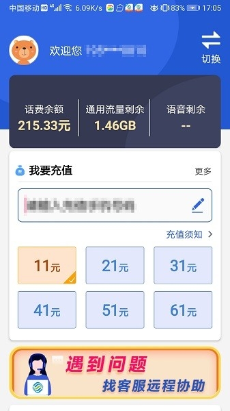 2、登录客户端在线充值均可享95折优惠,提供充值卡充值、在线充值和语音套餐;