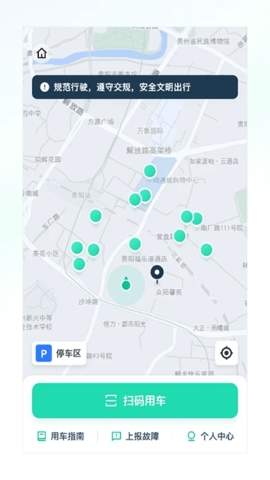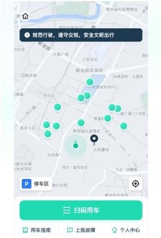 2、进入后就可以看到附近的共享车辆的位置了,如果就在身边可以直接通过扫描解锁车辆的使用权。