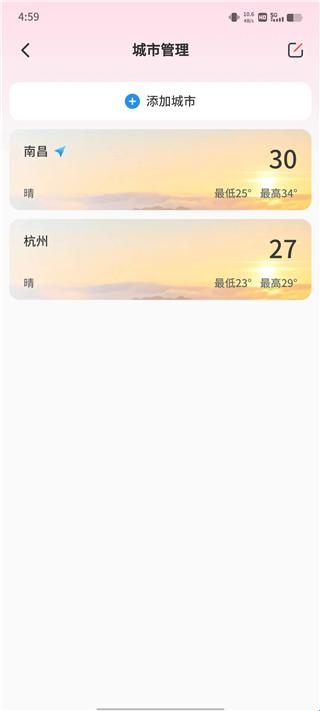 添加成功之后你选择的城市便会展示在这里,如果想要删除点击右上角编辑进行删除