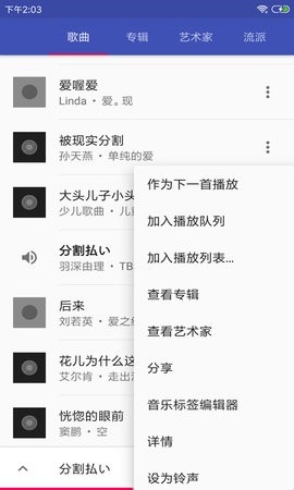 2、支持lrc歌词、音乐锁屏播放、音乐均衡器调节、歌曲资料编辑、歌曲增益放大模式、联网查询歌手资料、黑白名单、自定义界面风格等功能。