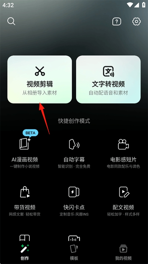 1、打开秒剪APP,点击首页的视频剪辑功能;