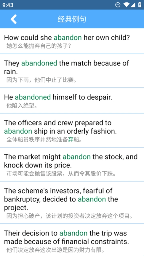 5、接着是“经典例句”结合句子,带入情景中去记单词记得更牢固。