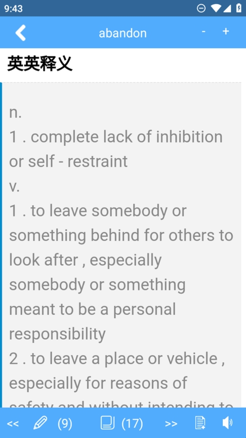 1、首先下载之后你可以在首页你可以输入你要查找的单词,以我们经典的abandon举例开始搜吧。