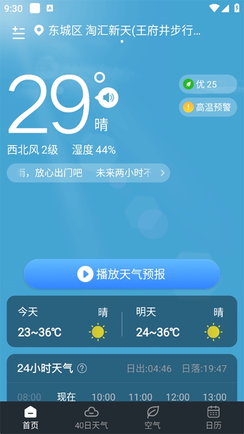 实时掌握24小时天气变化,当天天气温差提前预防;