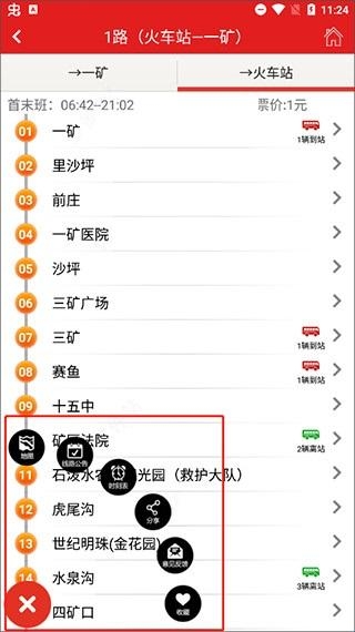 5、点击右下角按钮还能使用其他更多功能,例如收藏、分享、时刻表、查看公告等