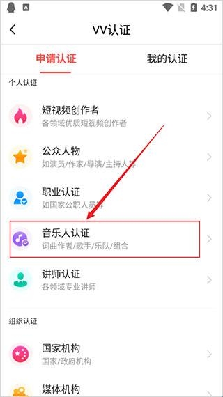 4、接下来,点击“音乐人认证”。
