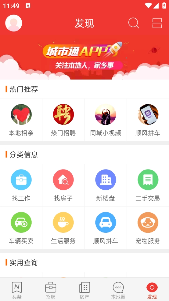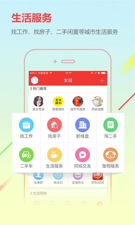 找工作、二手房买卖、新楼盘、二手交易等城市生活服务;