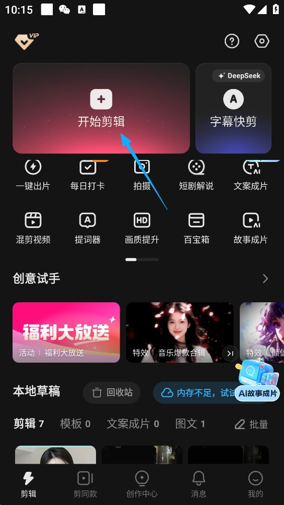 1、简简单单开启大片创作,直接剪辑出大片质感,快速上手使用。