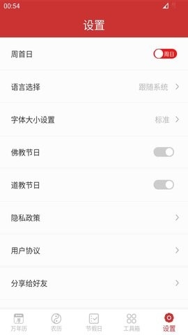 5、支持设置周一或者周日作为一周开始,根据个人偏好自由设置,支持字体大小设置;