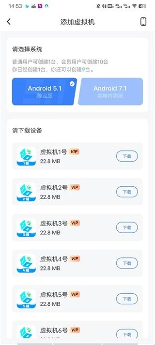 5、如果你还想要多开的话,可以点击下方的多开,下载其他的虚拟机;