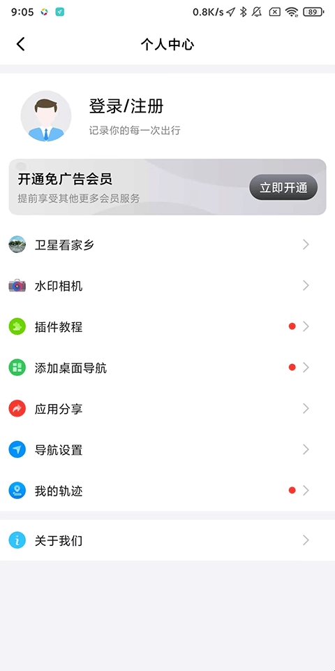 5、最后您还可以在个人中心页体验卫星看家乡、水印相机、添加桌面导航以及我的轨迹等特色功能。