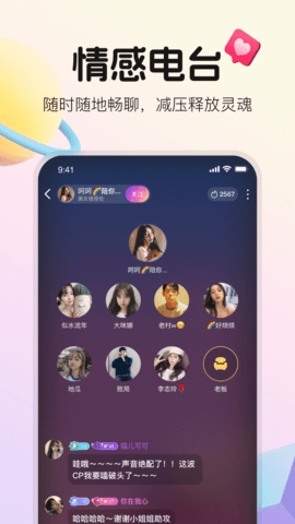 2、这款app中拥有各种情感电台,用户可以在线自由选择,还可以和主播进行互动。