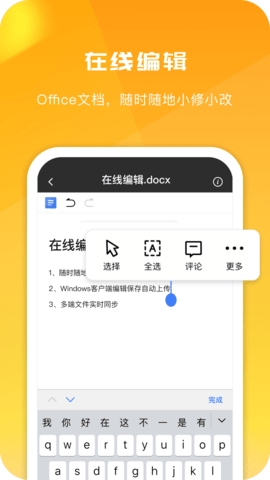 4、文档在线编辑(手机和电脑一样,随时编辑office文档,办公更高效)