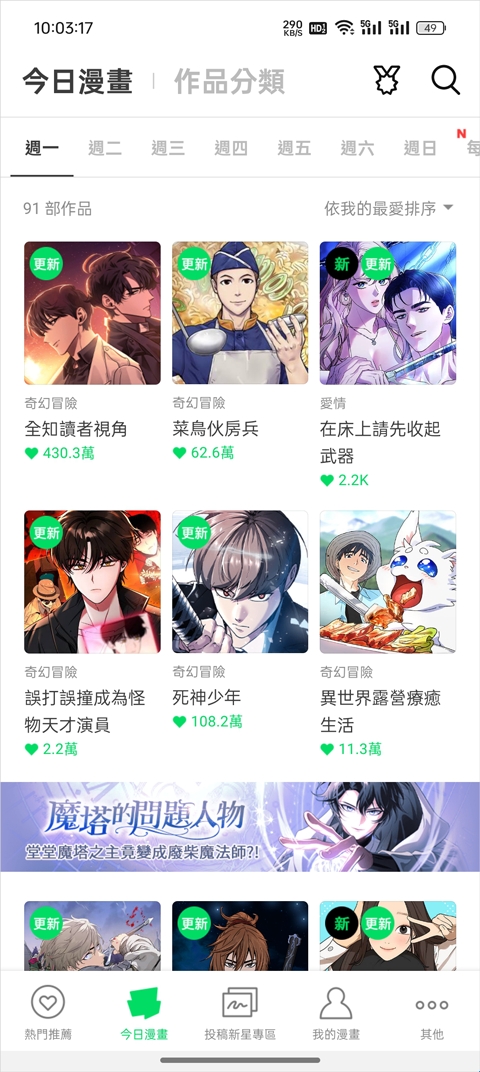 4、能够让大家在这里订阅更新各种漫画,每次更新能轻松阅读。